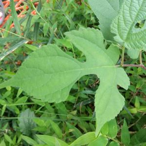 野生 ヤマグワの蔓がどこからか伸びてきてました。ちゃんと絡ませて桑の実を取ろうかな
