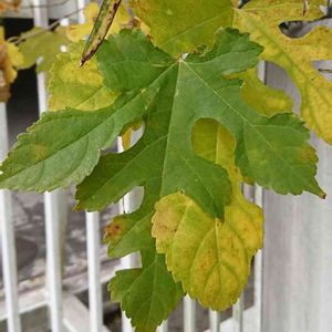散歩道 林縁で 高さ1mほど 深い切れ込みのある葉です。 幹は灰色で、クリーム色の楕円形の斑点があります。 お名前を教えてください🙇♂️ 追記 やこちゃんさんに名前を教えて頂きました。 ありがとうございました。 ヤマグワ(山桑) クワ科クワ属 落葉低木 雌雄異株まれに同株 花期4-5月