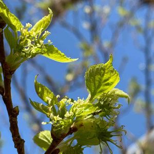 ヤマグワ 山桑 クワ科クワ 落葉低木、雌雄異株または雌雄同株異花 投稿写真は同株異花で、ピンぼけだが枝先に雌花があり雄花は数個下から枝元に多数着生している。