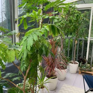 朝のサンルーム😊 毎日暑いけど、家の中がもうジャングルになっちゃうから🥺 大きなエバーフレッシュと小さな鉢と吊り鉢だけ室内置きです😊 サンルームの子は、葉焼けで可哀想🥲 遮光してるけど、直射日光は厳しいですね😮💨 そうしてみると、やっぱり多肉は凄いなぁ😍