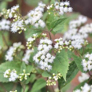ユーパトリウムチョコレート、コンペイトウみたいに可愛く咲いています😊小さな白いお花って大好きです😍 地下茎で良く増えて葉っぱも美しくて病害虫は特に無しです😊❣️ 朝日が当たる、または半日陰位が好き。 6月位に半分位に切り戻しして、その時に 茎を上部から数節の長さの挿し穂が作れます。花友さん用にとか💕 和名は銅葉フジバカマというみたいです。