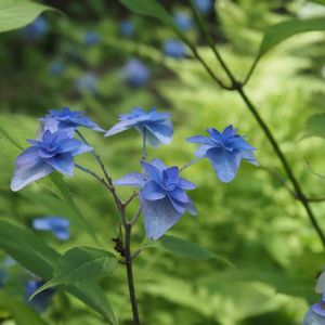 先日、お出かけ先で出会った紫陽花💙 まぼろしの紫陽花「シチダンカ」です 床の間に鉢植えで飾られてました✨ 江戸時代にシーボルトが「日本植物誌」で紹介し でもその後発見されず…… 戦後、六甲山系で偶然発見されて広まった紫陽花です💜 六甲山ゆかりの紫陽花なのでたまたま知っていて…… これを見た時に多分そうだと確信✌️ そこの奥様にお尋ねしたら やはり当たってました(๑˃̵ᴗ˂̵)و ヨシ! こんな時に自分のお花好きを実感✨ 涼しげなブルーと 楚々とした雰囲気が この季節にピッタリでした💙