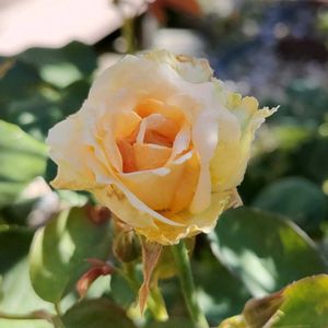 我が家の四季咲き薔薇(FL)の中で 一番元気な ❃スィートドリームSweetDream❃ 1987年イギリス作出 残暑の中、温かい色彩がキュートです😆💕 ④春の開花期、沢山の花弁で房咲きします。