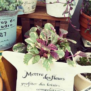 お休みののんびりとした朝🌄 先日衝動買いした鉢にシソ科のアジャガ植えてみました‼️ どんな💠が咲くかな👀✨⁉️ こういう色合いに弱いんだよなぁ~(*^^*ゞ