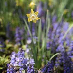 去年、花遊庭にスイセン💛とアジャガ💜咲いていました♡ೄ̥̽ 愛知県豊田市にて