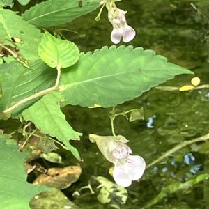 名前の通り 葉に隠れるように咲く ハガクレツリフネ🌿 (葉隠釣船) 和歌山〜四国 九州に 咲くそうです🫧🎶 *ツリフネソウ科 *ツリフネソウ属