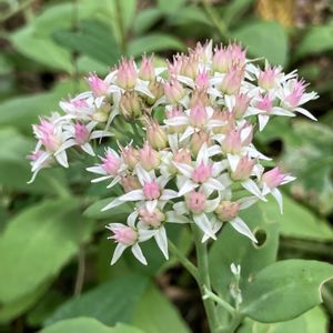 5mm程の小さな花が 集まって盛り上がる 花序の姿は ひときわ目立つ🎶💕 今日のお花 ベンケイソウ 優しい色合いの花姿に 反して 折りとった茎を 土に戻せば 又 根付く程丈夫な性質を 弁慶に例えた事からの名前!