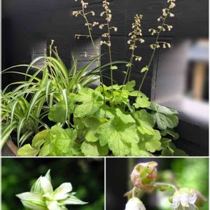フォローしている方の ヒューケラが素敵で欲しくなって 購入したヒューケラミラクル🍀 植え付けから2ヶ月経過〜 葉っぱモリモリ&可愛いお花が 沢山咲いてきました♡ 昨年の夏、購入のオリヅルランの ランナーが伸びてきました😊