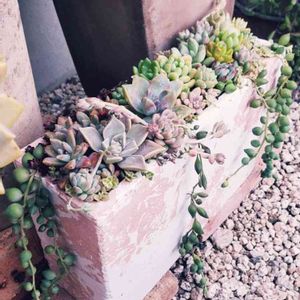 本日、3つめのpicです🎵(*´ノ∀`*)エヘッ 植え替えの余り達を集めました(* ̄▽ ̄)ノ~~ ♪ 育ってしまって またまた収まらなくなった💧 この植木鉢❤ 奥行き5㎝ほどですが、 高さがあるので 垂れ系にもってこいで お気に入りです💕 軒下はエケベリアに占領されてるので 野ざらしで頑張ってもらう予定です🎵