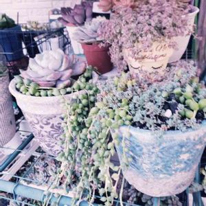 こんにちわ🍄 今年の3月に名古屋フラリエで開催された『多肉とみどりのマルシェ』で BABBIさんのWSに参加させていただきました❤️ その時の多肉ちゃん達が 肉厚でコロンと可愛く 大きくなりました🎵 とてもお気に入りのmiyuさん鉢でしたが どうにも小さくなってしまったので 一回り大きな鉢に植え替え❤