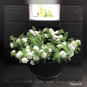 サフィニアフリルホワイト♡ スーパーベルダブルレッド❤️ 乱れながらもまだ頑張って 咲いてくれてます😊