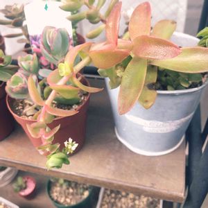 おはようございます🎵 会社の鉢植えの空いてるスペースに 勝手に植えた子宝弁慶草🌱 我が家より山なので 寒いからなのか 水が少ないのか 陽あたり良好だからなのか うちの子より淡く可愛い色❤️ 環境によってずいぶん違うな~。 他の多肉も持ってこよ~⤴💓 モリムラ万年草は 会社の裏に自生してたものです🌱