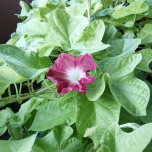 肥料過多なのか?葉っぱばっかりワサワサ繁ってジャングル化している、朝顔の団十郎さん。 蕾もなく、このまま葉っぱを育てて終わるのか⁉️と思ったけど 遂に昨日初めてのお花が咲きました😆💕 前日早くに寝落ちしてしまい、目覚めたら朝5時前! でもお陰で開花したてのお花に出会えました💕 とりあえず1個は咲いたからよかった~😅