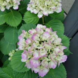 昨年お向かいさんに挿し木でもらった紫陽花 満開に咲いてます。 でも色がピンクだと思ってたら ピンクでもない、でも紫とも言い難い 複雑な色になりました🤣💦 でもお花というか、お花のようなまん丸の1つのかたまりは どれも大きく豪華に咲いてます。真ん中のちっちゃい子も頑張って顔出してる🤣💕 お向かいさんはずっと雨ざらしなので酸性に傾いちゃってるのかな?来年は又違う色になるのか楽しみです🎵