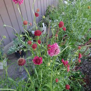 今日の花壇 リシマキアボジョレーを切って次はスカビオサらしき蕾が一番背高ノッポです。 赤色っぽいかな。 ガイラルディアは黄色と赤の2色咲きです。 奥の方では鉢植えの宿根かすみ草が花盛りです🌼