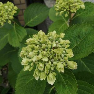 お向かいさんに頂いた挿し木の紫陽花。 もうすぐ咲きそうです!😆💕 うーっすらピンクっぽい⁉️ ちなみにお向かいさんとこにも、今年は蕾が1個付いてる🎵