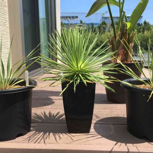 ベランダで頑張っている アガベさん達です😆😆😆✨ 左:ストリクタ(吹上)さん 右:ジェミニフローラ(王妃乱れ雪)さん 王妃様は、水切れしてヘナヘナに・・・😱 ゴメンなさい🙏💦 それにしても・・・王妃様のフィラメント 出ないなぁ😅