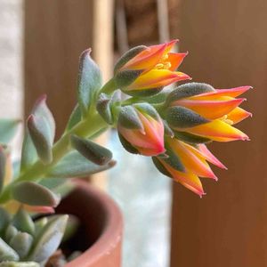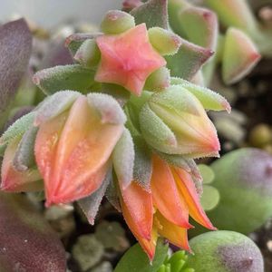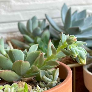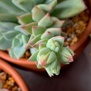 かわいい色合いのクイテンシス! 春、立派な花芽が左右から出現して、かなり形が崩れました😅 花芽の茎にたくさんの葉っぱがついていたので、葉さしができないかな〜っと挑戦してみましたが、成功しませんでした💦 残念! 現在、軽くろくろっ首状態ですが、下から子株がたくさん出てるので良いっか😆