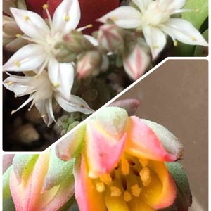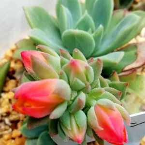 多肉、クイテンシスのお花🌼 オレンジ色で、蕾がピンク、可愛いです😍💕