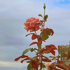 雲仲間 薔薇の葉が紅葉してます 通り道のお宅の畑の薔薇🌹 朝の散歩道で