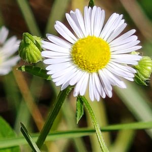 エリゲロン(源平小菊) 通り道の石垣の上のお宅のお庭に 朝の散歩道で
