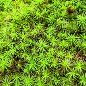 スギゴケ 旅館 山水園の塀の上に 朝の散歩道