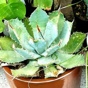 アガベ 通り道の開店前の花屋さんの表に 朝の散歩道で