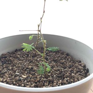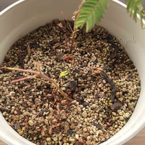 枯れたおじぎ草から出てきた葉が夏のサイズ感とは違い1cmくらいで可愛い♡