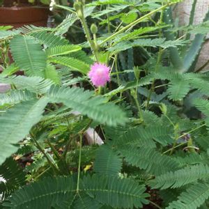 種から育てたおじぎ草。 沢山の花を咲かせています。 また種がとれそうです🎵