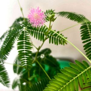 オジギソウに花が咲いた❣️ ピンク色のスポンジを ひとつまみ ちぎったような あー可愛い💕 蕾もいっぱいついている😃 いっぱい咲いたらどうしよう❣️