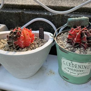 ✤サボテン 緋牡丹錦 (ギムノカリキウ ムミハノビッチバリエガータ) ⬆️全斑?! ∑(°д° ) : 安心してください⬇️ 『緑』ありますよ🤣 🟩 緑色部分の葉緑素(葉緑体)が少しあるので光合成できますよね?|ω・)💦 ▶8月、ホームセンターで緋牡丹錦が沢山並んでいましたが、優柔不断で選べませんでした(;´・ω・)色が色々 ▶9月末に見た時 あ!抜けて傾いてるΣ(゚д゚;) 急いでいたので見ただけ💦 ▶10月上旬 えっ(°д° )!! まだ傾いたまま?! とりあえず直す…(触ってはいけませんね💦) 錦はこの子だけになってました(・"・)ムムム 気になる…(抜けてた割に)触った感じは大丈夫そう… よし!救出だっ! ウチにおいで〜(・▴・)♡ 無事に育てられますように🙏💦 緋牡丹錦の色って変化するのですか? この子は赤くなったりしますか? 赤くならなかったら赤い子もほし…い…🤣沼