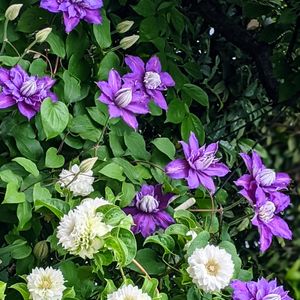 クレマチス 🤍ダッチェス オブ エジンバラ、咲きました☺️ 花数が多いからか、小さめ... 剪定しないとですね💦 💜ビューティ オブ ウーセスターも咲いてきました☺️ 今年は濃い紫でよかったー🙌