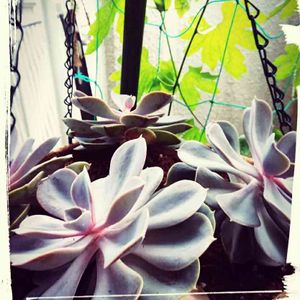 こんばんは😃🌃 昼間はまだまだ暑いですね、蒸し暑~い😅 多肉ちゃんにお日さまがたくさん降り注いで欲しいのに、雨ばかりで~す😱 パールフォンニュンベルグが自由に暴れやすいように吊り下げました~😍 紅葉して、たくさん暴れてくれますよ~に👏 お疲れ様です😆🎵🎵