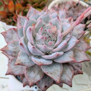 こんばんは😊 多肉寄植えのエケベリアさん🧡 お花🌸は茎がニョキニョキと伸びてきました♪ この子の写真を撮っていて発見💡 ③pic:南十字星⭐️の、ニョキニョキ伸びて花芽をつけている真ん中の子… チビちゃんが、間からも顔を出して主張〜🤭笑笑