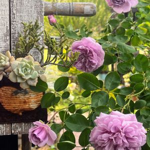 今日はもう一枚😅 大好きな薔薇レイニーブルーがようやく咲いてきました🌹 冬場、鉢替えをしたのですが花数的には去年とあまり変わらないし花の大きさも少し小さいような‥ でも、今年も無事に咲いてくれたので嬉しいな🥰