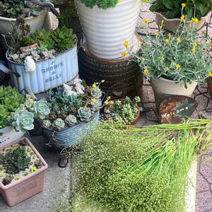 朝から色あせてきたセダムの花芽をカット✂️ 1時間かかってやっと全体の5分の1くらいかな😅 奥の方やら多肉畑にガレージの壁ぎわなどまだまだしばらくカット生活が続きそうです😂 土曜日に次男ちの孫姫7歳がうちに遊びに来たいと言うリクエストに応えて1歳の孫姫と共にお迎え😅 そのままお泊まりし日曜日はスーパーの中にある図書館に行ったり公園に行ったりして夜はパパママも来て我が家で夕食を食べて帰りました 余談ですが今年から小学校に通い出した孫姫はどうやら学校に行くのが少し嫌なようです😓 理由を聞くと(毎日勉強ばかりするから)(保育園はいっぱい遊んで楽しかった)と言うのです。 ん〜🫤そうだよね わからないでもない どう返答すれば良いのか? 悩むよねー😮💨 (パパもジィジも毎日、お仕事頑張って行ってるやろママも毎日ご飯作ったり家の用事頑張ってるやろ大人になっても色々頑張らなあかんねん)(○○ちゃんは小学生になったから遊びばっかりじゃなくて勉強も頑張らんとあかんねん)(でも、週に2回もお休みはあるし夏休みもあるよ!勉強を頑張ってたら良い事や楽しい事もいっぱいあるよ)と返答しました。 こんな返答しかできなかったけど保育園生活から小学校生活に変わってこの時期はこんなふうに悩んでる子供たちも沢山いるのかな? とりあえずイジメとか友人関係で悩んでる訳では無さそうなのでその点は安心しましたが。 色々悩んで、もがいて大人になって行く!パパやママには相談できない事もバァバには相談できて少しでも心が休まる存在になれたら良いなと思ってます 余談が長くなってしまいましたが今週もよろしくお願いします😊