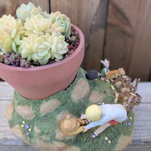 こんばんは(*ˊᵕˋ*) 風の強い1日でした🍃 この鉢が可愛いくてお気に入りなんです(,,>᎑<,,)プーさんを皆で引っ張ってる🤭