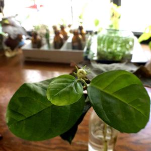 八重咲きのジャスミン。 水挿しする事、数ヶ月。 やっと根っこが出て、オマケに蕾まで✨