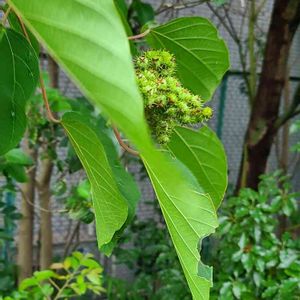 アカメガシワ (赤芽柏) トウダイグサ科の落葉高木です。 新葉が赤色で葉がカシワのように大きい事が名前の由来です。 昔は葉を食べ物を載せる器として使ったため、ゴサイバ(五菜飯)、メシモリバ(飯盛菜)と呼ばれました。 実は多数のトゲに包まれており、熟すと割れて黒い種が飛び出します。 若葉は食用に、樹皮は«生薬»に使われます。 雌雄異株で、これ☝️は雌花です。
