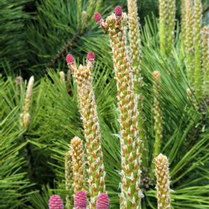ピンクの松の雌花 花を見たのは初めてで花弁も萼片もないようです???