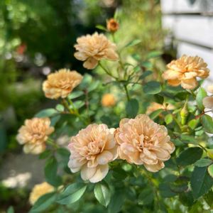 おはようございます♪ よく晴れています☀️ 朝から蝉が大合唱〜🎶😅 早起きして早朝殺菌を済ませ木陰で一服してると気持ち良くてうとうと…😪 ①②ミニバラモカ🤎 午後は日陰になる東側がちょうど良いみたい♪一丁前にベイサルまで出してます😉 ③去年まではつるバラの足元に居たリクニスは陽当たりが悪くなったので移植したけど…ここも良く無いかなぁ💦 ピンクが入るはずなのに白一色😂 ④ちょっと邪魔な存在になってるムラサキゴテンですが小さなピンクは可愛らしいです😅 ⑤キャットテール❤️ 雨続きで茶色くなった花を摘んだけど次々と上がってくれます🎶 既に暑くなってきましたが💦今日も暗くなるまで💪😆