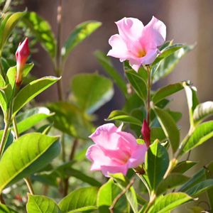 玄関 花*花 〜夏〜 <つるなしマンデビラ> 夏を豊かに彩ってくれる花、マンデビラ‼️