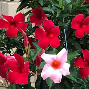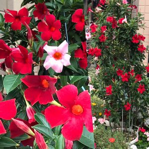 マンデビラ❣️ 素敵なお花達に遭遇しました〜♪♪♪💕😊 真っ赤なお花がなんとも言えない〜❣️ ❤️❣️❤️❣️🤍❤️❣️❤️❣️🤍