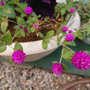 センニチコウ✨ちなつ 色ミックスの種を蒔いたら、白と濃いピンクの花が咲きました😄 草丈が低くてこんもりと咲くちなつさん、薄いピンクもあればいいのになー