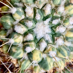 Mammillaria compressa f. variegata 白竜丸錦群生の天辺 wU^ェ^U