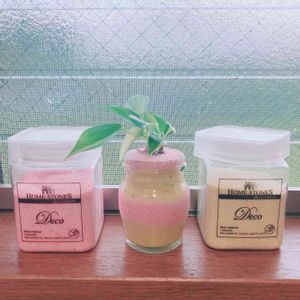 思いつきで買ってしてみたカラーサンドです。♡初めてなので、砂が盛り盛りで水を入れたら溢れ出ます…失敗ながらかわいいから良いやって感じです。💓🌱