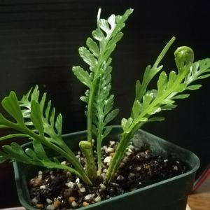 おはようございます。 寒の戻りで今日は肌寒い感じ。 プラスティックみたいな葉っぱのシダさんはお部屋の中でピョンピョン元気。 この子は葉の先からランナーが伸びて子株ができる可愛い子。