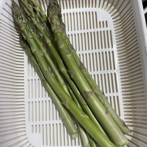 おはようございます😊 アスパラガス。。 今朝畑で収穫🎶 苗を植えて3年目。。 だんだん太いアスパラガスが出るようになってきました💚 今晩のおかずはこのアスパラガスを使おうかな。。