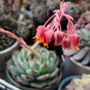 20250424 今朝は子供たちがわりとさっくり起きてくれたので、5分間くらい多肉を愛でる時間ができました。朝の5分はとても貴重😁 ①メンサさんがとうとう開花宣言です🎉割としっかり大きめなオレンジのお花。どんどん咲きなはれ☀ ②ツインテールちゃんも最初の1つが咲きました。思ったほど花芽は高く上がらない💦花弁短くないかい?🤣 ③花芽を摘み忘れてたギルバさん💦勝手に自家受粉して、結実してるような🤣自分で交配する時は花弁を取ってしまうのでパッカン開く鞘が多いけれど、自然界ては花弁に包まれて結実するのね。なんか新鮮✨️ ④アモエナさん。両方とも花芽だったようです✨️どんなお花が咲くのか楽しみです😘 ⑤オンスローさんの花芽をチェックしてたら、脇芽を見つけました🌱結構仔吹きしやすい?