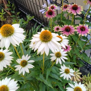 ガザニア ビースト カナリアスマイル 淡色の花弁に、中心が黄色が涼しげです 📝 4~5月に咲いて  花が少し減った6月初めに 梅雨の蒸れ予防のタイミングで 鉢の内側まで切り戻して✂    中央は 株元の生え際まで    中間~端は  段々    それでも密集するので  茎数を減らしカット 数年目の苗(冬に 株元をざくり株切り) 6月下旬に再び開花🌼 7月7日(←②写真を撮りました) いまは段々減り ときどき1輪くらい 雨ざらしだから  茎元の葉は徐々に黄色く腐り 葉は丈夫で硬めなぶん  荒く扱うと折れます ・水やりは  斜め横から土へ ・枯れ葉は  時々そっと掻き分け     手やピンセットで取ってる     良い葉を痛めずらいかなぁ。 カラーリーフ鑑賞中🌿.∘ (追記) 7月下旬~ 希釈液肥を与えだしてみた 8月初~ 蕾から花が数輪づつ咲いてます PWさんから発売された当時は 中心部の蘂が黄色だ! というだけで飛びつき 育て方も情報も少なく 調べる暇も無く。 切り戻しをせず そのまま茎を秋までずっと 数本の長いヘビのようでした🐍 初冬に1回✂ 毎年、なぜ伸びながらで花が少ないんだろうと 途中で1度 退場いただいた記憶があります 時代で情報も増え 梅雨の剪定を知りました。 場所が無い問題で コンパクトに育ててます♡